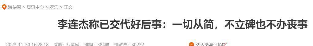 参考信息:游侠网——2023年11月30日——李连杰称已交代好后事:一切从简,不立碑也不办丧事中原网——2021年4月16日——外媒突曝李连杰去世,国内疯传他患骨癌,原来真相是这样星娱STAR——2025年11月1日——62岁李连杰被传“换心脏”借运,本人亲自下场回应,光膀子身上无疤痕