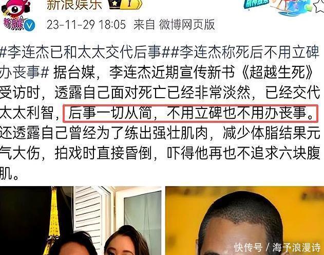 他透露自己面对死亡很淡然,已经交待太太利智,后事一切从简不立碑不办丧事。不管那种埋葬方式都无所谓。到了2025年,62岁的李连杰的身体更是让人担心。