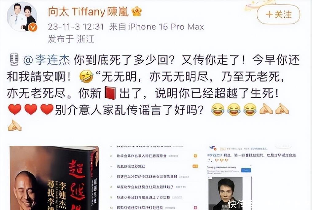 就连好友向太都说他“你都死了多少次了,到底死了没有?”每次被传去世,李连杰总要出来辟谣。2023年,屡次被传病危的李连杰再也忍不住了。